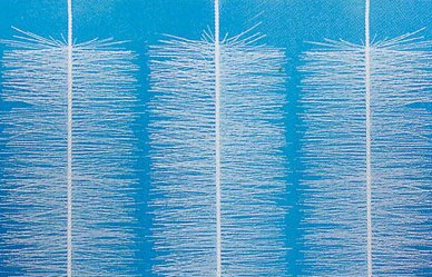 彈性立體填料篩選了聚烯烴類和聚酰胺中的幾種耐腐、耐溫、耐老化的優(yōu)質品種,混合以親水、吸附、抗熱氧等助劑,采用特殊的拉絲,絲條制毛工藝,將絲條穿插固著在耐腐、高強度的中心繩上,由于選材和工藝配方精良,剛柔適度,使絲條呈立體均勻排列輻射狀態(tài),制成了懸掛式立體彈性填料的單體,填料在有效區(qū)域內能立體全方位均勻舒展?jié)M布,使氣、水、生物膜得到充分混滲接觸交換,生物膜不僅能均勻的著床在每一根絲條上,保持良好的活性和空隙可變性,而且能在運行過程中獲得愈來愈大的比表面積,又能進行良好的新陳代謝,這一特征與現(xiàn)象是國內目前其他填料不可比擬的。