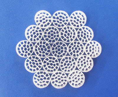 特殊的結構,空心填料結構為內外共有三層空心圓,每個圓內有1條棱,外有36條棱,經(jīng)多次研究開發(fā)成功,采用一次成型。